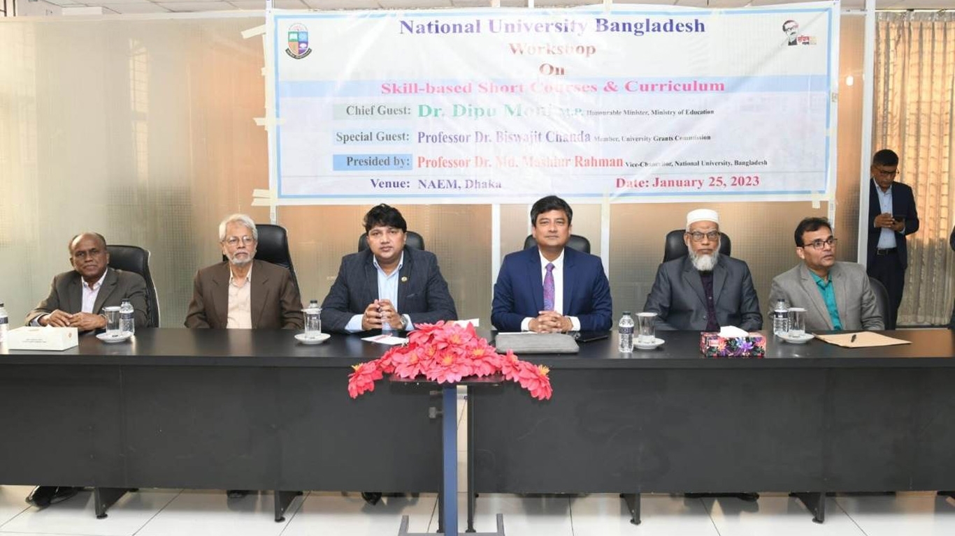 জাতীয় বিশ্ববিদ্যালয়ের দক্ষতাভিত্তিক ১৯টি শর্টকোর্স প্রবর্তন নিয়ে ‘স্কিল বেইজড শর্ট কোর্সেস অ্যান্ড কারিকুলাম’ শীর্ষক দিনব্যাপী ওয়ার্কশপ হয়েছে। আজ বুধবার সকালে রাজধানীর জাতীয় শিক্ষা ব্যবস্থাপনা একাডেমিতে (নায়েম) এই ওয়ার্কশপ হয়। জাতীয় বিশ্ববিদ্যালয়ের উপাচার্য অধ্যাপক ড. মো. মশিউর রহমানের সভাপতিত্বে ওয়ার্কশপে প্রধান অতিথি হিসেবে অনলাইনে যুক্ত ছিলেন শিক্ষামন্ত্রী ডা. দীপু মনি।